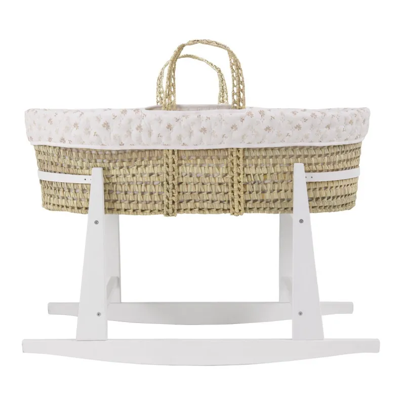 Este moisés de palma acolchoado é a mistura perfeita de conforto e estilo para o seu bebé! Pernas de madeira super estáveis. Com medidas de 39×80×25 cm, é ideal para espaços reduzidos e garante que o seu pequeno descanse como numa nuvem.