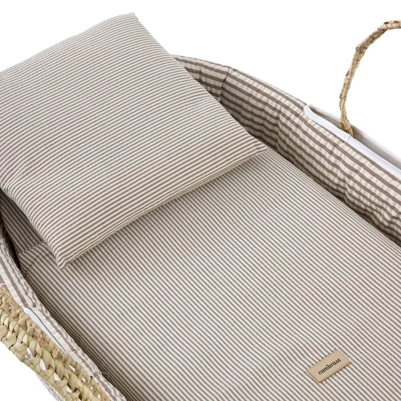 "El Moisés De Palma Acolchado De Cambrass Es Una Opción Excepcional Para Los Primeros Meses De Vida De Tu Bebé. Su Diseño Cuidadosamente Elaborado Ofrece Tanto Comodidad Como Funcionalidad Para Satisfacer Las Necesidades De Tu Pequeño Durante Este Período Crucial De Crecimiento. Fabricado Con Una Base De Mimbre, Este Moisés Proporciona Una Superficie Sólida Y Estable Para El Descanso De Tu Bebé. Viene Completo Con Un Colchón, Una Suave Colcha, Un Cómodo Cojín Y Una Vestidura Coordinable Con La Decoración De La Habitación, Añadiendo Un Toque De Estilo Y Elegancia Al Entorno. Para Complementar Este Moisés Y Brindarle Aún Más Versatilidad, El Porta Cuco De Cambrass, También Conocido Como Portacapazo, Está Fabricado En Madera Natural De Alta Calidad. Su Altura Óptima Permite Una Excelente Visibilidad Del Bebé En Todo Momento, Lo Que Facilita El Contacto Visual Con Los Adultos Desde La Cama U Otros Lugares De La Habitación. Además, Su Función De Balancín Proporciona Un Suave Movimiento Que Ayuda A Facilitar El Sueño De Los Bebés, Promoviendo Un Ambiente Tranquilo Y Relajado."