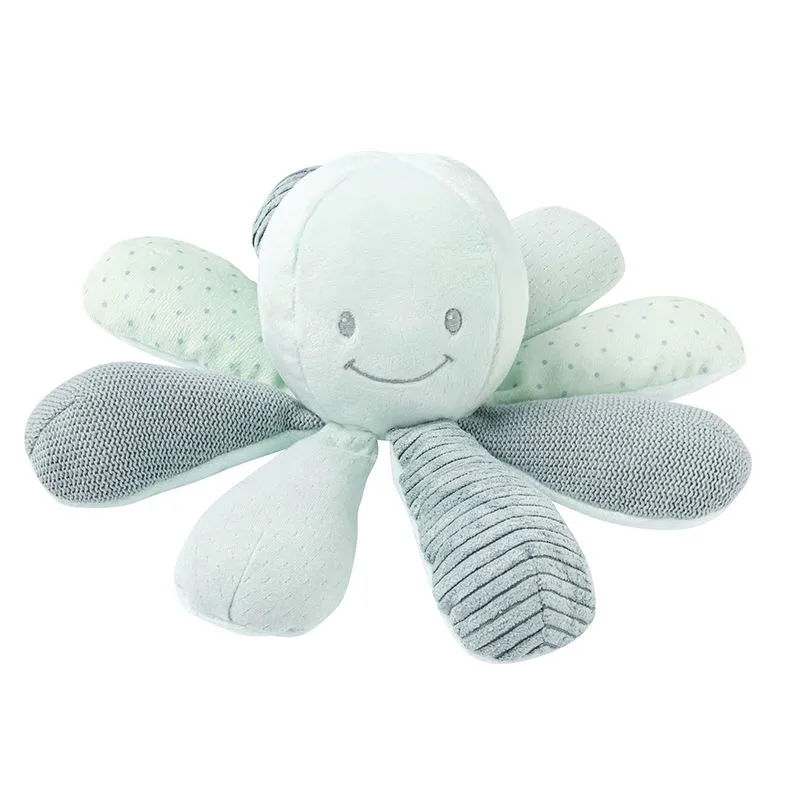 • Brinquedo de peluche inovador: concebido em torno do reflexo de agarre inato dos recém-nascidos que agarram espontaneamente os tentáculos do polvo