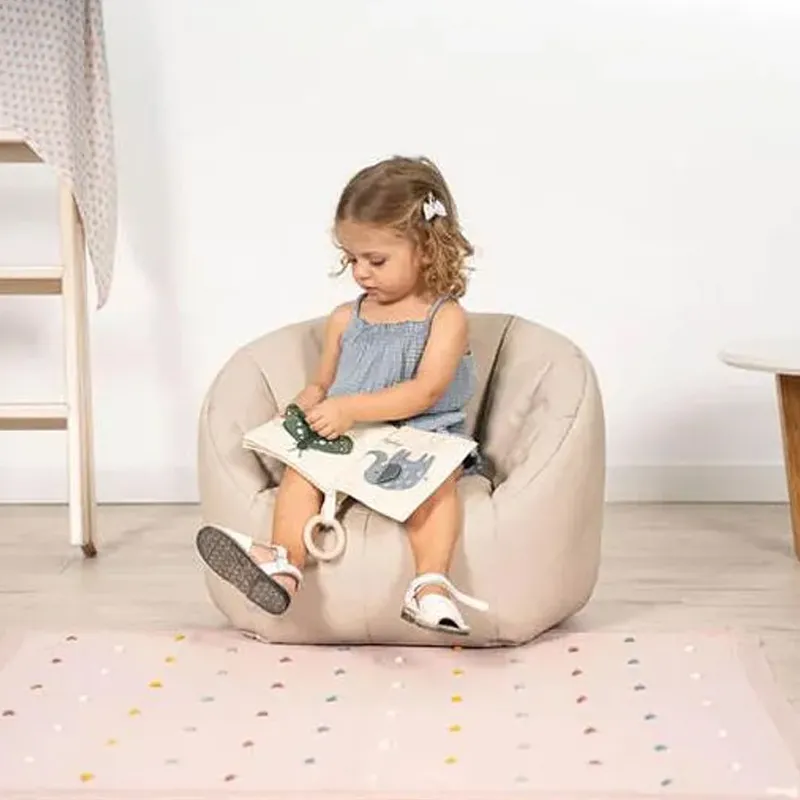 Este puff infantil em cor bege é uma opção ideal para criar um canto confortável e relaxante para os mais pequenos. Seu design acolchoado e funcional o torna um complemento perfeito para o descanso e o jogo diário.