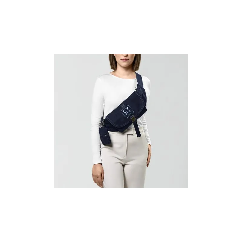 Pode ser usada cruzada no peito, na cintura (frontal ou traseira) ou pendurada no ombro.