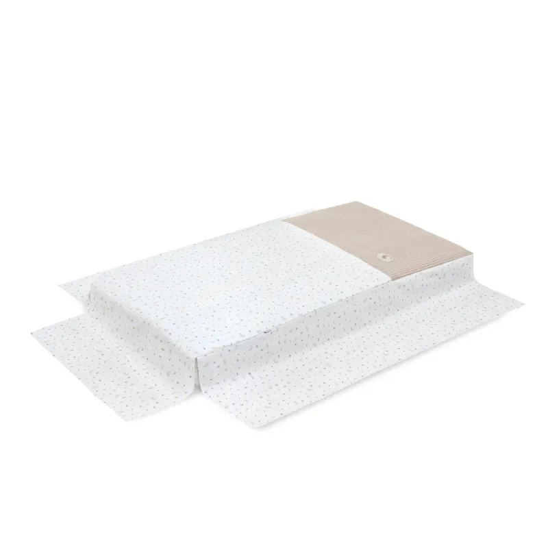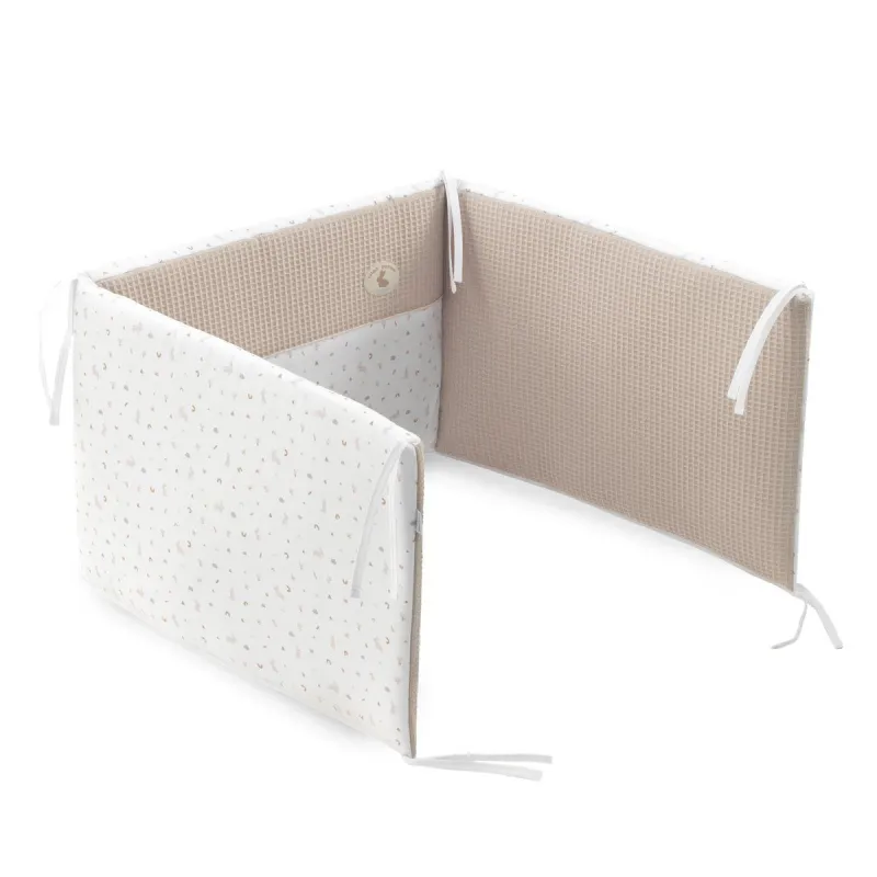 Conjunto de 2 peças para vestir o berço, composto por edredom e protetor.