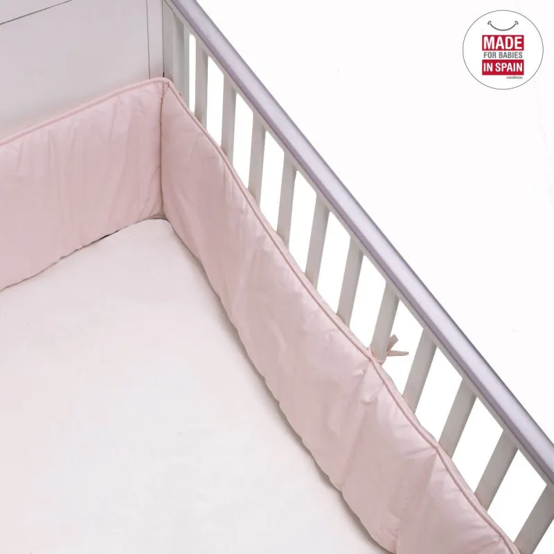 O protector de 420 cobre completamente todas as partes do berço. O seu acolchoado protege o bebé de qualquer impacto. É um elemento muito prático e fácil de instalar graças à sua fácil amarração. Fabricado na Espanha pela Cambrass.