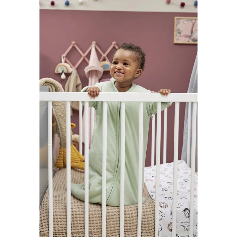 O saco de dormir está disponível nos seguintes tamanhos: 60 cm para usar de 0 a 4 meses aproximadamente e um comprimento de 50 a 65 cm. 70 cm para usar de 3 a 9 meses e um comprimento de 60 a 75 cm. 90 cm para uso de 6 a 30 meses aproximadamente e um comprimento de 70 a 95 cm. 110 cm para usar a partir dos 24 meses aproximadamente e um comprimento de 90 a 115 cm. O comprimento do seu filho é mais importante do que a idade para determinar o tamanho adequado do saco de dormir. Se o saco de dormir for muito grande, o seu bebê pode afundar. Nunca use um saco de dormir se a cabeça do seu pequeno couber na abertura do pescoço. Num saco de dormir para bebês muito pequeno, o seu filho não poderá esticar completamente as pernas nem terá espaço suficiente para se mover, a distância entre os seus pés e a parte inferior do saco de dormir não deve ser inferior a 10 cm. Portanto, certifique-se sempre de ter o saco de dormir do tamanho adequado. Ótimo conforto para dormir no inverno, primavera e outono. Com mangas removíveis. 100% algodão: para um clima perfeito para dormir. Ajuste seguro. Disponível em vários tamanhos. Não use muito detergente (também é melhor para o meio ambiente). Lavável na máquina a 30 graus no máximo. Use uma bola de secadora após a lavagem para soltar bem o enchimento.
