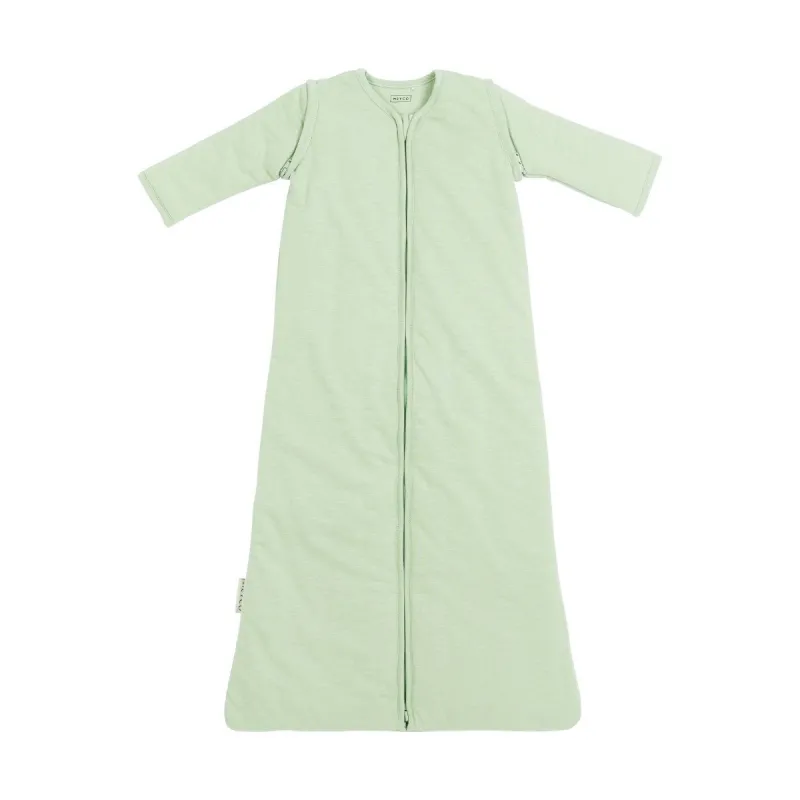 O saco de dormir está disponível nos seguintes tamanhos: 60 cm para usar de 0 a 4 meses aproximadamente e um comprimento de 50 a 65 cm. 70 cm para usar de 3 a 9 meses e um comprimento de 60 a 75 cm. 90 cm para uso de 6 a 30 meses aproximadamente e um comprimento de 70 a 95 cm. 110 cm para usar a partir dos 24 meses aproximadamente e um comprimento de 90 a 115 cm. O comprimento do seu filho é mais importante do que a idade para determinar o tamanho adequado do saco de dormir. Se o saco de dormir for muito grande, o seu bebê pode afundar. Nunca use um saco de dormir se a cabeça do seu pequeno couber na abertura do pescoço. Num saco de dormir para bebês muito pequeno, o seu filho não poderá esticar completamente as pernas nem terá espaço suficiente para se mover, a distância entre os seus pés e a parte inferior do saco de dormir não deve ser inferior a 10 cm. Portanto, certifique-se sempre de ter o saco de dormir do tamanho adequado. Conforto ótimo para dormir no inverno, primavera e outono. Com mangas removíveis. 100% algodão: para um clima perfeito para dormir. Ajuste seguro. Disponível em vários tamanhos. Não use muito detergente (também é melhor para o meio ambiente). Lavável na máquina a 30 graus no máximo. Use uma bola de secadora após a lavagem para soltar bem o enchimento.