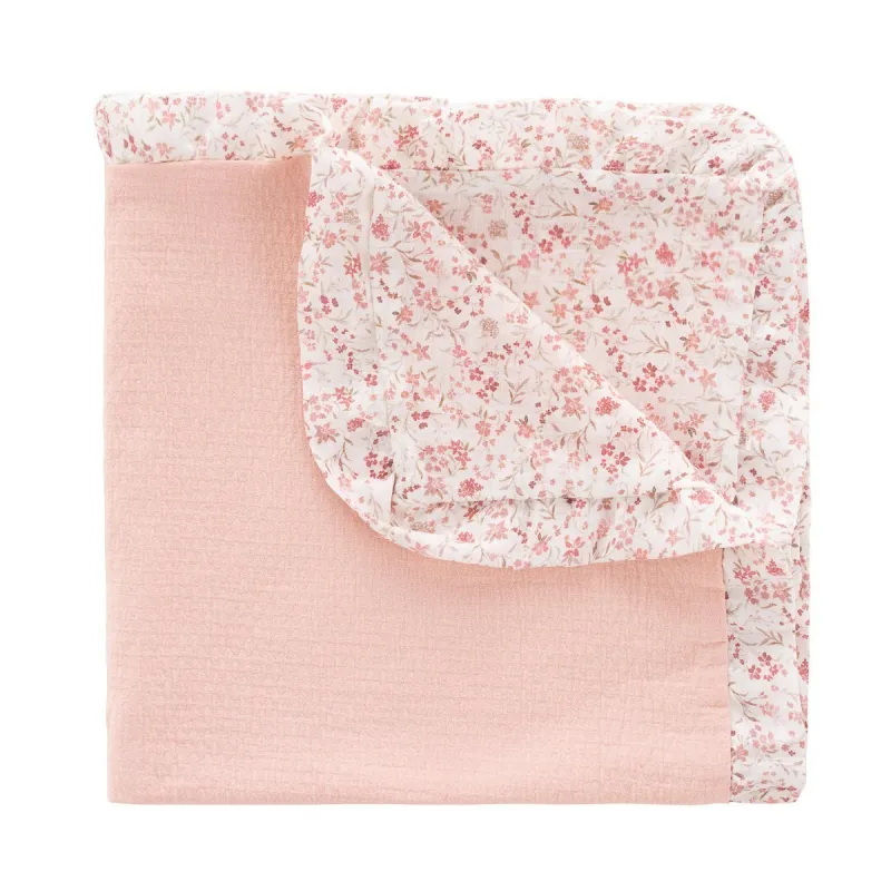 Una manta ligera y reversible, diseñada para los más pequeños. Fabricada con bambula de algodón estampado y punto tricot suave en el reverso, con un encantador volante fruncido. Ideal para la cuna, minicuna o paseos...