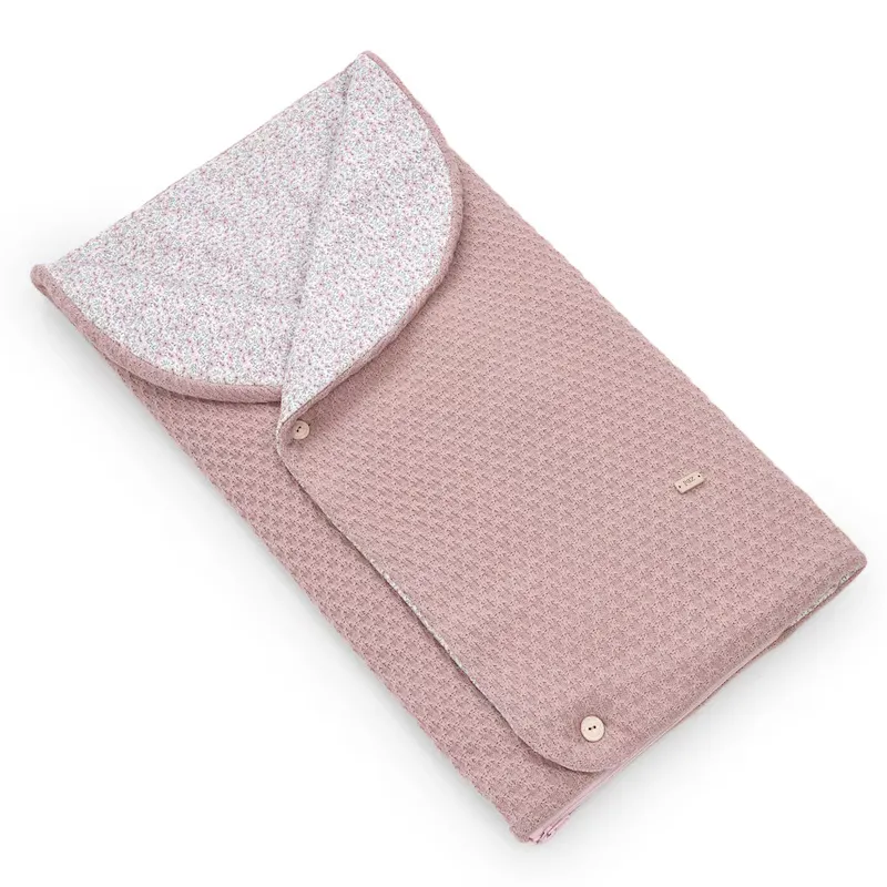 O saco nana com lapelas de malha e tecido "Alia Rosa Atardecer" combina funcionalidade e um design delicado para oferecer ao bebê uma experiência de abrigo confortável e envolvente. Sua mistura de materiais o torna uma peça acolhedora e esteticamente encantadora.
