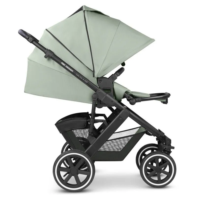 El cochecito Salsa 4 Air de ABC Design en color Aloe es elegante, noble y exclusivo. Con su diseño Diamond Edition, combina materiales de alta calidad, innovaciones técnicas y una elegancia atemporal. Equipado con ruedas neumáticas y un chasis de cromo brillante, este cochecito es dinámico, maniobrable y ligero, ideal para pasear con tu bebé desde el primer día.