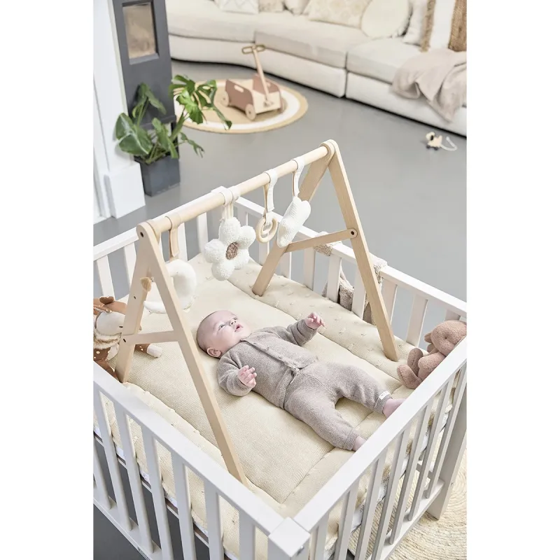 ¿Estás buscando una bonita alfombra de parque que combine perfectamente con tu interior? ¡Entonces no puedes dejar de echar un vistazo a la alfombra de parque Knots de Meyco Baby! Esta alfombra está disponible en una gran variedad de colores preciosos, así que siempre encontrarás una opción que encaje con tu estilo. Los relieves 3D le dan a la alfombra un aspecto moderno y lujoso, ¡todo un punto de atracción en cualquier habitación! La parte superior está fabricada en 100% algodón, mientras que la parte inferior está hecha de un suave tejido tipo teddy. ¿Conoces ese momento en que de repente hay silencio en casa? Probablemente significa que tu peque se ha quedado profundamente dormido… ¡así de cómoda es esta alfombra! Consejo: ¿Quieres que tu peque esté aún más mullidito en el parque? Coloca una alfombra de parque con sábana ajustable debajo de la alfombra. La ventaja es que así no podrá deslizarse. La alfombra de parque está disponible en dos tamaños. La versión de 77x97 cm encaja perfectamente en un parque estándar, mientras que la de 95 cm es ideal para un parque redondo. También puedes usarla en el suelo o en el jardín como alfombra de juegos. Así siempre tendrás un espacio agradable y suave para que tu peque juegue o se relaje.