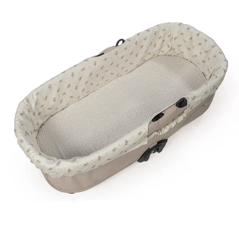 Cubre cuco com ajuste elástico que se adapta perfeitamente ao capazo, criando um acabamento seguro e envolvente.