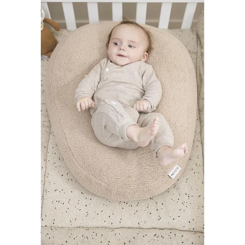 "Dale una segunda vida y una mayor durabilidad a tu antiguo cojín de lactancia o cojín de embarazo con esta funda relax de Meyco Baby. Con ella, podrás crear en un abrir y cerrar de ojos un cómodo nido para tu bebé, ¡y además estarás apostando por una opción sostenible! Este nido es ideal para siestas y momentos cortos de descanso, y puedes usarlo en el parque, en la cuna o directamente en el suelo. El nido proporciona esa sensación de seguridad del vientre materno, lo que ayuda a que tu bebé esté tranquilo y relajado. ¿Qué más se puede pedir? La funda relax está confeccionada con el tejido teddy más suave y achuchable. Gracias a la banda elástica en la parte inferior, puedes colocarla sobre tu cojín de lactancia en un instante. ¿Se ha ensuciado? No pasa nada, porque puedes quitar la funda fácilmente y meterla en la lavadora. La funda relax se puede utilizar desde el nacimiento. Tan pronto como tu bebé empiece a darse la vuelta, normalmente alrededor de los 6 o 7 meses, su uso ya no está recomendado."