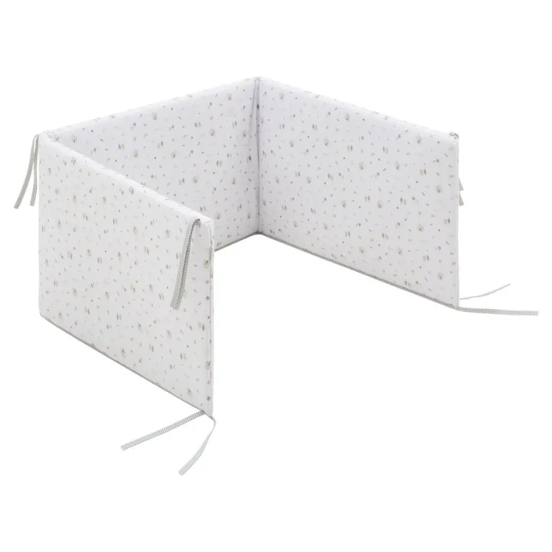 Juego de 2 piezas para vestir la cuna, compuesto por funda nórdica más protector (incluye el relleno) + cojín decorativo. La funda nórdica, es la prenda que viste la cuna y cumple el cometido de protección contra el frío cubriendo a nuestro bebé con una prenda que al incorporar el relleno, la hace especialmente confortable y calidad para sus primeros meses de vida. Su cualidad de tener un relleno desenfundable la convierte en una prenda versátil para ser utilizada en invierno y en verano y también ofrece la ventaja de ser lavada con facilidad. El protector fabricado con tejido cuyo interior va acolchado con fibra hueca, amortigua los posibles golpes del bebe contra la cuna.
