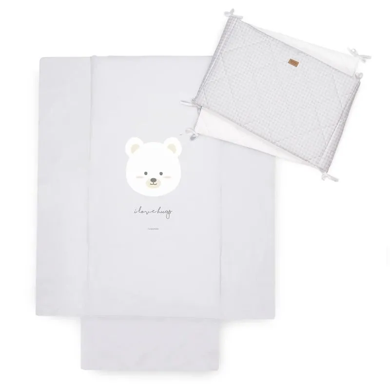 El pack essential Montana Gris incluye colcha, relleno nórdico y protector reversible. Este pack hará que vestir la cuna del bebé sea fácil y cómodo y además quedará precioso. El protector de cuna viene acompañado de un Velcro® para poder adaptarse a cualquier cuna.
