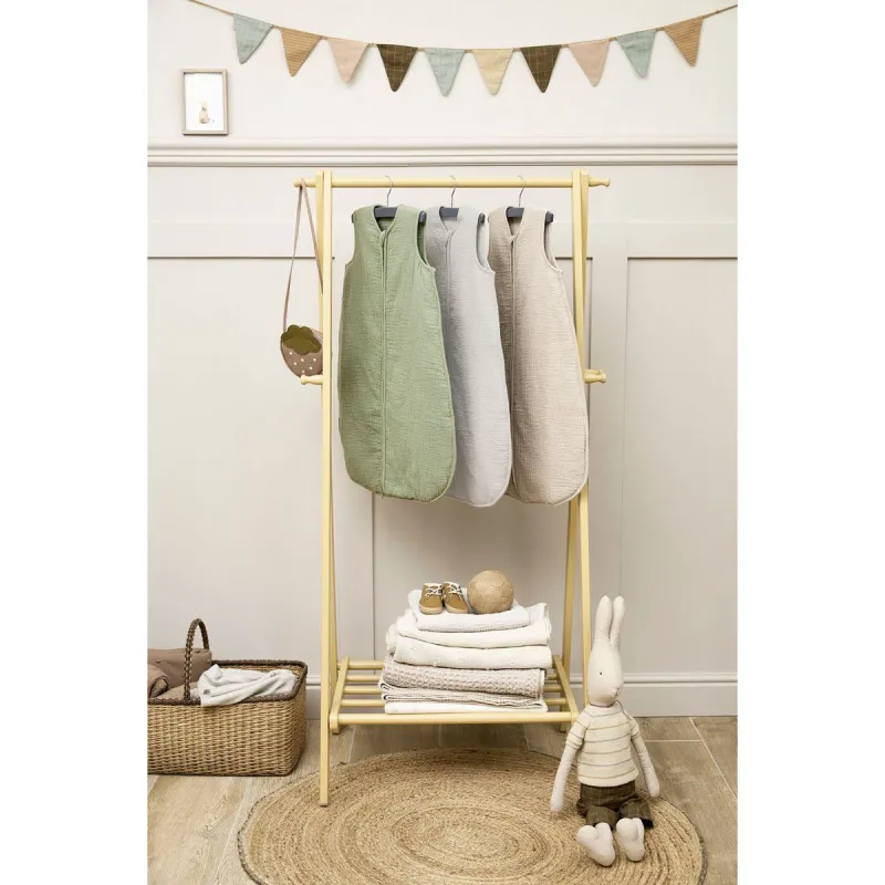 Está disponible en las siguientes tallas: 60 cm para usar de 0 a 4 meses aproximadamente y una longitud de 50 a 65 cm. 70 cm para usar de 3 a 9 meses aproximadamente y una longitud de 60 a 75 cm. 90 cm para uso de 6 a 30 meses aproximadamente y una longitud de 70 a 95 cm. 110 cm para usar a partir de los 24 meses aproximadamente y una longitud de 90 a 115 cm. La longitud de tu hijo es más importante que la edad para determinar la talla adecuada del saco de dormir. Si el saco de dormir es demasiado grande, tu bebé puede hundirse. Nunca utilices un saco de dormir si la cabeza de tu pequeño cabe por la abertura del cuello. En un saco de dormir demasiado pequeño, tu hijo no podrá estirar completamente las piernas ni tendrá espacio suficiente para moverse, la distancia entre sus pies y la parte inferior del saco de dormir no debe ser inferior a 10 cm. Por tanto, asegúrate siempre de que el saco de dormir es de la talla adecuada. Fabricado en 100% algodón hidrófilo prelavado. Relleno 100% poliéster. Confort óptimo para dormir en días y noches fríos. Cremallera YKK completa. Secado muy rápido. Confort maravillosamente suave para la delicada piel del bebé gracias al tejido de muselina. Valor TOG de 2,0. Disponible en varias tallas y colores. Ajuste seguro. No utilice demasiado detergente (también es mejor para el medio ambiente). Utilice un ciclo delicado para lavar este frágil tejido hidrófilo y, si es necesario, utilice una bolsa de lavandería para evitar que se arrastre. Lavable a máquina a 40 grados como máximo. Apto para secadora. Se puede planchar a temperatura media-alta. La cremallera completa YKK cumple la norma europea y se cierra de arriba abajo, de modo que el tirador (la lengüeta que se utiliza para abrir y cerrar la cremallera) termina en la parte inferior. Esto evita que tu pequeño baje la cremallera por sí mismo y mantiene la abertura del cuello al tamaño adecuado. Esto evita que tu bebé se hunda en el saco de dormir, una situación potencialmente peligrosa. Además, esto mantiene el tirador alejado de la cabeza de tu hijo y ofrece a tu bebé un entorno seguro y cómodo para dormir.