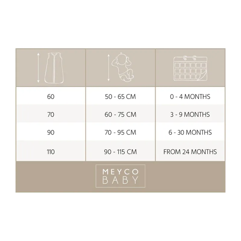 Para que tu pequeño duerma una noche perfecta, un saco de dormir cómodo es indispensable. En este saco de dormir Meyco Baby, tu pequeño podrá dormirse cómodamente. El moderno tejido acanalado le da un toque agradable y la tela es maravillosamente suave y elástica. El saco de dormir está confeccionado en un 95% de algodón suave y un 5% de elastano. El tejido acanalado transpira bien y ofrece una excelente regulación de la humedad. El saco de dormir Meyco Baby tiene un ajuste seguro gracias al buen ajuste en el cuello y los brazos. La larga cremallera en la parte inferior facilita cambiar al bebé y poner y quitar el saco de dormir. El saco de dormir tiene un valor TOG de 0,3. Cuanto más alto es el valor TOG, más cálido es.
