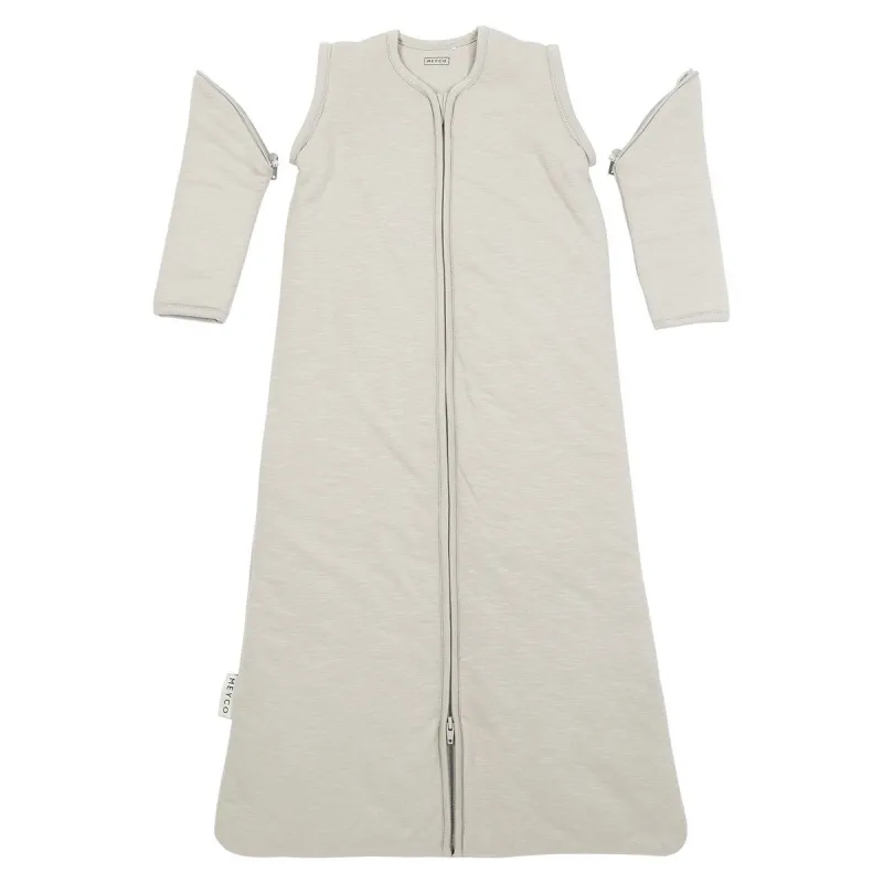El saco de dormir está disponible en las siguientes tallas: 60 cm para usar de 0 a 4 meses aproximadamente y una longitud de 50 a 65 cm. 70 cm para usar de 3 a 9 meses y una longitud de 60 a 75 cm. 90 cm para uso de 6 a 30 meses aproximadamente y una longitud de 70 a 95 cm. 110 cm para utilizar a partir de los 24 meses aproximadamente y una longitud de 90 a 115 cm. La longitud de tu hijo es más importante que la edad para determinar la talla adecuada del saco de dormir. Si el saco de dormir es demasiado grande, tu bebé puede hundirse. Nunca utilices un saco de dormir si la cabeza de tu pequeño cabe por la abertura del cuello. En un saco de dormir para bebés demasiado pequeño, tu hijo no podrá estirar completamente las piernas ni tendrá espacio suficiente para moverse, la distancia entre sus pies y la parte inferior del saco de dormir no debe ser inferior a 10 cm. Así que asegúrate siempre de tener el saco de dormir del tamaño adecuado. Óptimo confort para dormir en invierno, primavera y otoño. Con mangas desmontables. 100% algodón: para un clima perfecto para dormir. Ajuste seguro. Disponible en varias tallas. No utilice demasiado detergente (también es mejor para el medio ambiente). Lavable a máquina a 30 grados como máximo. Utiliza una bola de secadora después del lavado para aflojar bien el relleno.