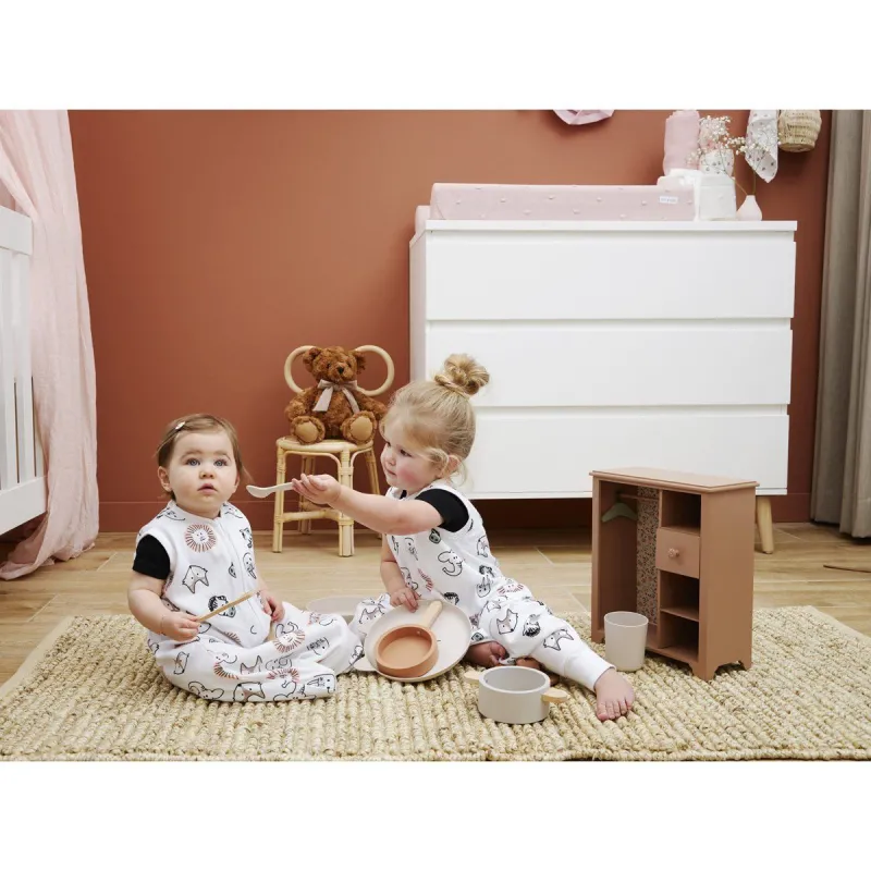 El saco de dormir para bebés consta de 1 capa hecha de algodón 100% suave, por lo que es perfecto para los días y noches más calurosos del verano. El algodón transpira bien, tiene una buena regulación de la humedad, mantiene a tu pequeño a la temperatura adecuada y garantiza así que los veranos no sean demasiado calurosos. El saco de dormir tiene un ajuste seguro gracias al ajuste ceñido en el cuello y los brazos. El saco de dormir tiene un valor TOG de 0,3. Cuanto mayor sea el valor TOG, más cálido será el saco de dormir.