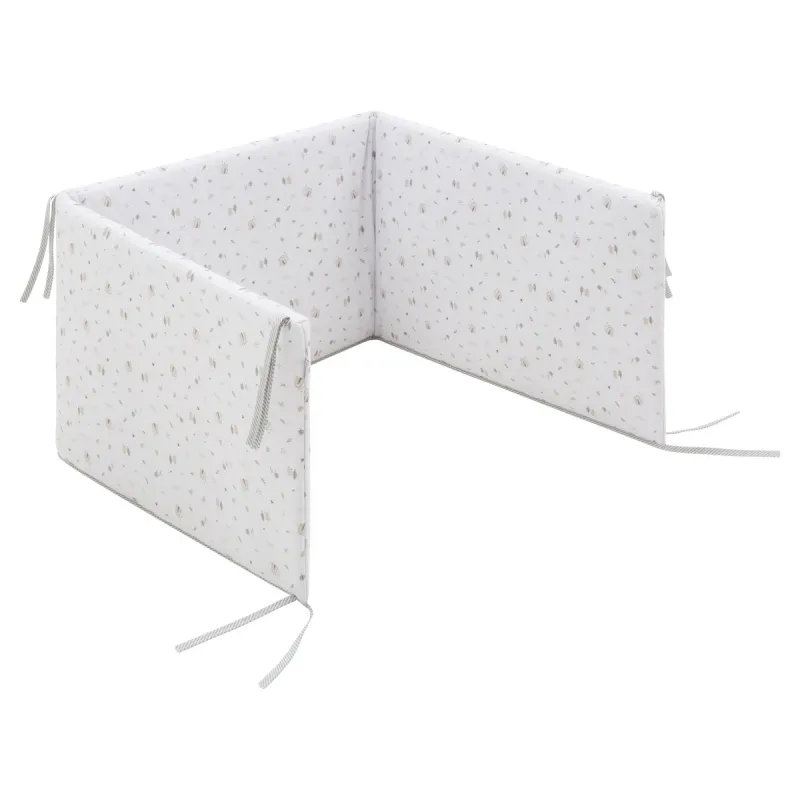 Juego de 2 piezas para vestir la cuna, compuesto por funda nórdica más protector (incluye el relleno) + cojín decorativo. La funda nórdica, es la prenda que viste la cuna y cumple el cometido de protección contra el frío cubriendo a nuestro bebé con una prenda que al incorporar el relleno, la hace especialmente confortable y calidad para sus primeros meses de vida. Su cualidad de tener un relleno desenfundable la convierte en una prenda versátil para ser utilizada en invierno y en verano y también ofrece la ventaja de ser lavada con facilidad. El protector fabricado con tejido cuyo interior va acolchado con fibra hueca, amortigua los posibles golpes del bebe contra la cuna. Funda Nórdica - 110x170 cm Protrector - 210x40x3 cm