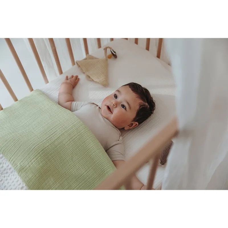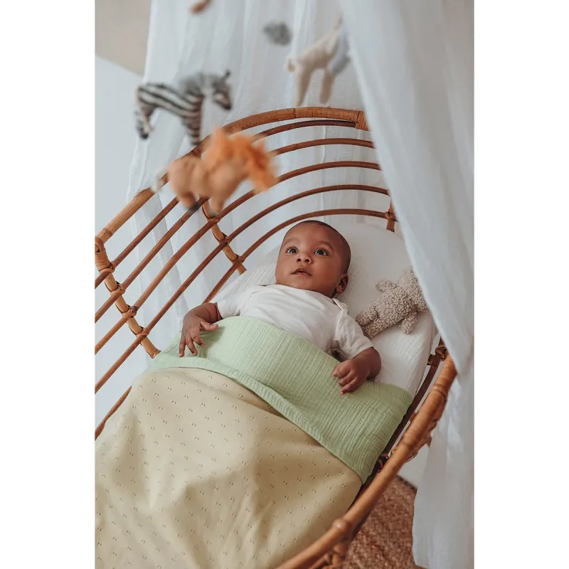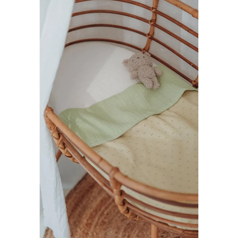"Con esta sábana de muselina prelavada de Meyco Baby, tu bebé dormirá cómodo y fresquito. Está confeccionada en 100% algodón, lo que la hace muy suave, transpirable y con gran capacidad de absorción. Gracias al tejido de muselina, es ideal para los días y noches más cálidos. Y además… ¡también puedes usarla como manta ligera! Colores y tamaños disponibles La sábana está disponible en varios colores que combinan perfectamente con el resto de la colección Meyco Baby y con la decoración de cualquier habitación infantil. Está disponible en dos tamaños: 75x100 cm: ideal para cuna o cochecito 100x150 cm: para cama de cuna Se utiliza debajo de la manta, aunque en verano también puedes usarla sola. Ventajas de un vistazo Disponible en dos medidas: para cuna o cochecito, y para cama de cuna Varios colores a elegir Perfecta para combinar con las mantas Meyco Baby Confort térmico gracias al algodón de muselina prelavado También puede utilizarse como manta ligera en verano Consejos para conservarla como nueva No uses demasiado detergente (mejor para el tejido y el medio ambiente) Lavable a máquina hasta 40 ºC Puede plancharse a temperatura media-alta Apta para secadora, aunque se mantiene suave si se seca al aire "
