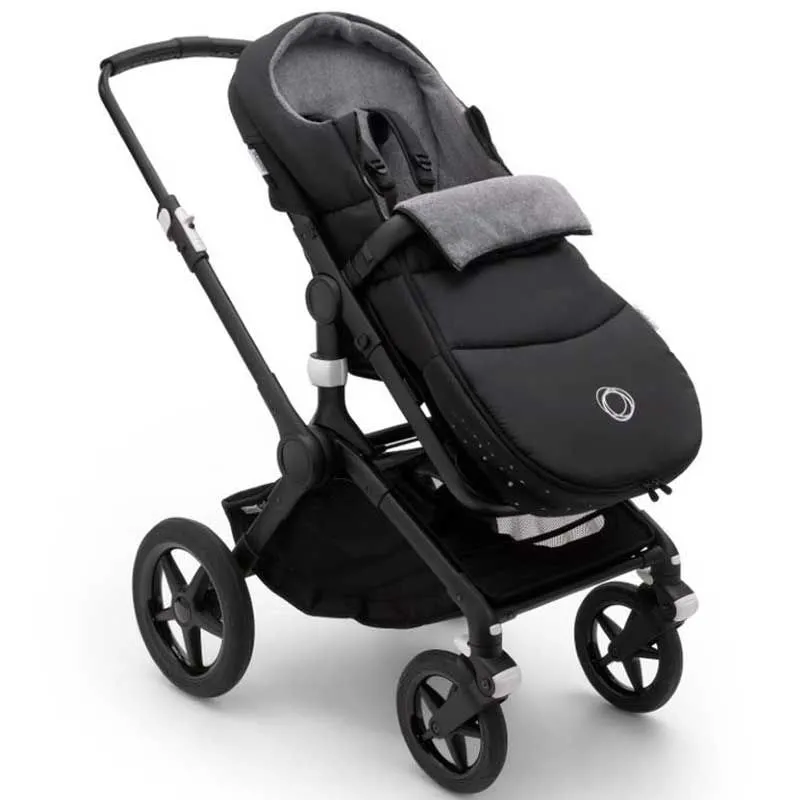 El saco de silla Bugaboo Negro Medianoche ayuda a regular la temperatura corporal de tu pequeño en épocas de bajas temperaturas. Su exterior repele el agua y sus suaves tejidos interiores transpirables proporcionan confort a tu bebé.