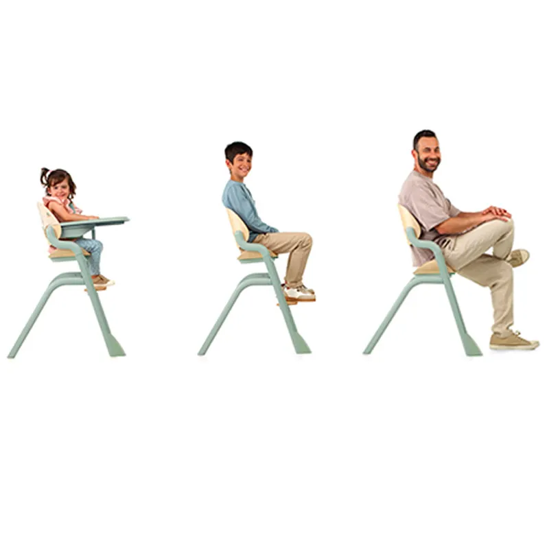 Diseño 2 en 1, que permite usarla como trona alta o transformarla rápidamente en un conjunto de silla y mesa.
