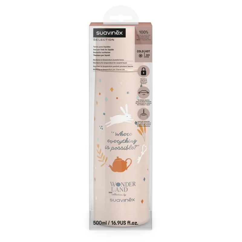 El Termo Para Líquidos Wonderland Liberty - Rosa de Suavinex es el compañero perfecto para transportar tus bebidas favoritas, ya sean calientes o frías, manteniendo su temperatura durante horas. Con una capacidad de 500 ml, este termo es ideal para llevar agua, infusiones, café, leche o cualquier bebida que desees, asegurando que se mantenga a la temperatura óptima hasta el momento de su consumo.