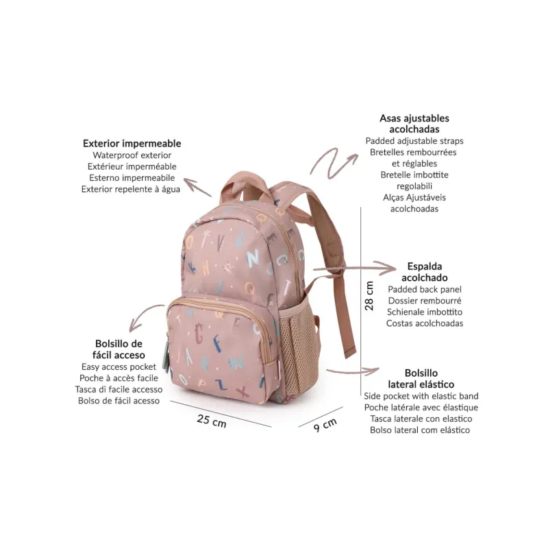 Bolsillo exterior con cremallera superior (20 cm x 14 cm), pensado para facilitar el acceso a los peques.